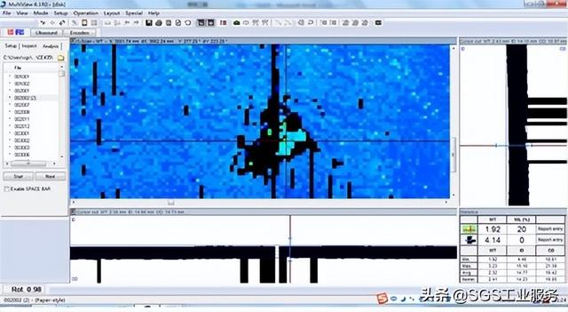 在管子内外表面都能反射回一个回波,通过计算可以得到管子内径、外径和壁厚。反射镜由涡轮头推进并高速旋转,旋转一周可检测一圈换热管的壁厚,探头持续拉出,则可以测量整根换热管并形成直观的图形。