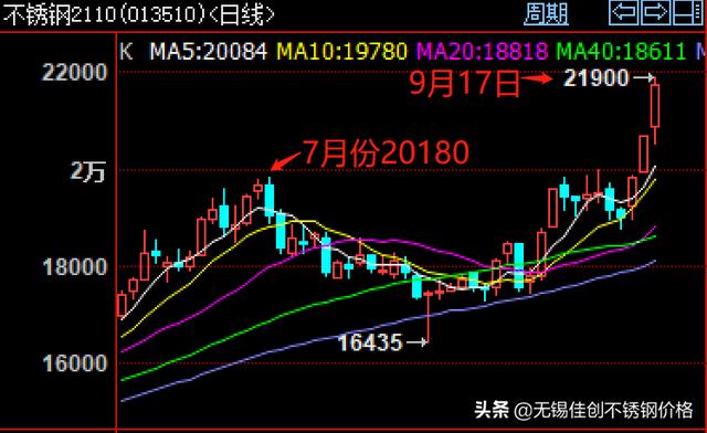 上海不锈钢期货盘面强势上涨,伦镍、沪镍盘面价格全面大幅上涨,期货价格大幅上涨刷新了近7年的最高价格,使得现货不锈钢价格跟涨。