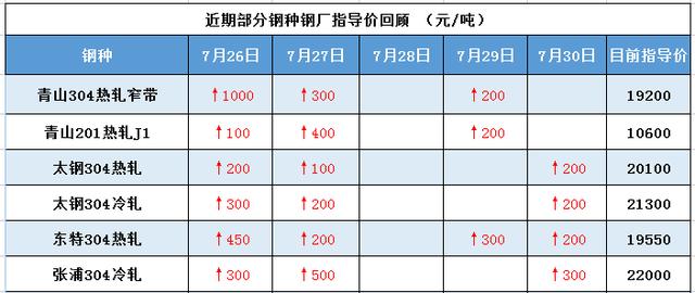 截稿前,304冷轧,大厂资源报21400-21800元/吨,民营资源报20700-21000元/吨;304热轧民营资源报19700-20650元/吨。