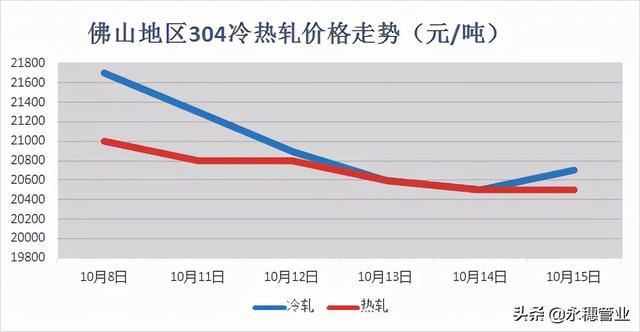 截稿前,304冷轧大厂资源报22500-22700/吨,民营资源报20600-20700元/吨;304热轧民营资源报20500-20600元/吨。近期304冷轧回调幅度较大,甚至出现冷热同价、倒挂现象。