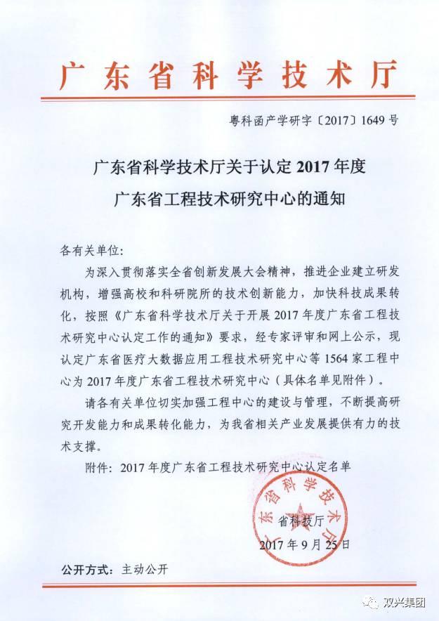 2017年9月25日,广东省科学技术厅下发了《关于认定2017年广东省工程技术研究中心的通知》。按照《广东省科学技术厅关于开展2017年度广东省工程技术研究中心认定工作的通知》要求,经专家评审和网上公示,认定广东省内1564家(佛山150家)工程中心为2017年度广东省工程技术研究中心。佛山钢管组建的研发中心被正式认定为“广东省不锈钢精密焊管工程技术研究中心”。