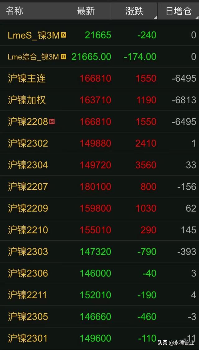 伦镍当前下跌200多美元;沪镍早间上涨午后震荡