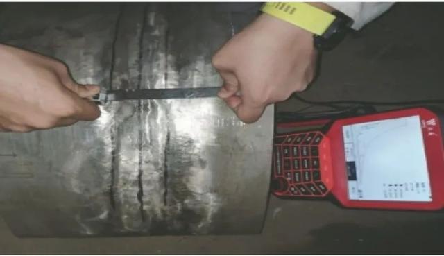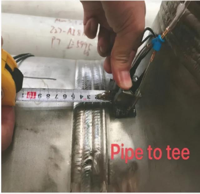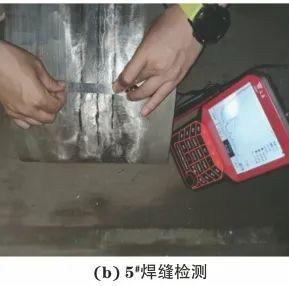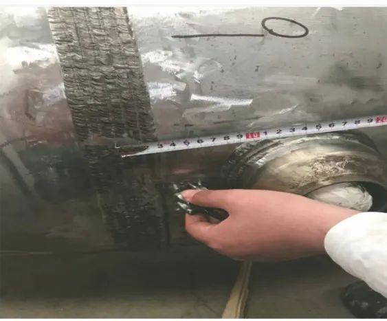 图23 直管与部件对接焊缝检测现场(扫查受限)