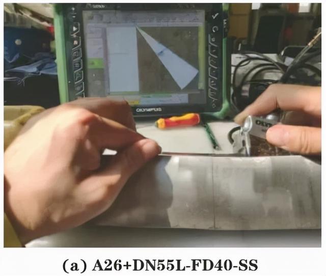从以上检测结果可以看出,对人工缺陷试管的上表面缺陷应采用A27+DNCR组合进行检测,而对焊缝根部,应采用A26+DN55L-FD40-SS组合进行检测。