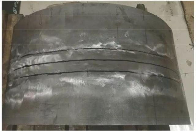 (1) 常规超声纵波斜探头检测,没有发现任何信号。