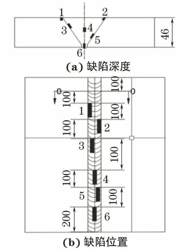 人工缺陷模拟试管采用切除对比试块后的余料制作,依据ASME BPVC.V-2019第4章强制性附录IX中对于缺陷定量和分类的规程评定要求,确定缺陷的数量和位置。