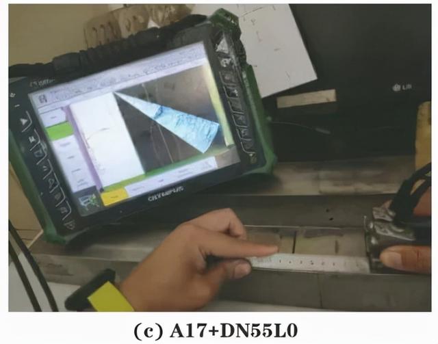由上可知,A27+DNCR探头与楔块组合所产生波束移动距离最远,A17+DN55L0组合效果次之,A26+DN55L-FD40-SS组合效果最差。