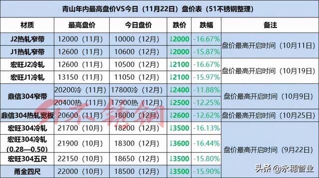 通过跌价,唤醒需求?;叵?021年这一路暴涨,304最高与最低涨价超7000,201冷轧涨价达5000,许多下游实体被迫停产,很多工程停滞,暴涨的材料抑制了需求。如今,通过材料价格的回落,给需求入场的机会。