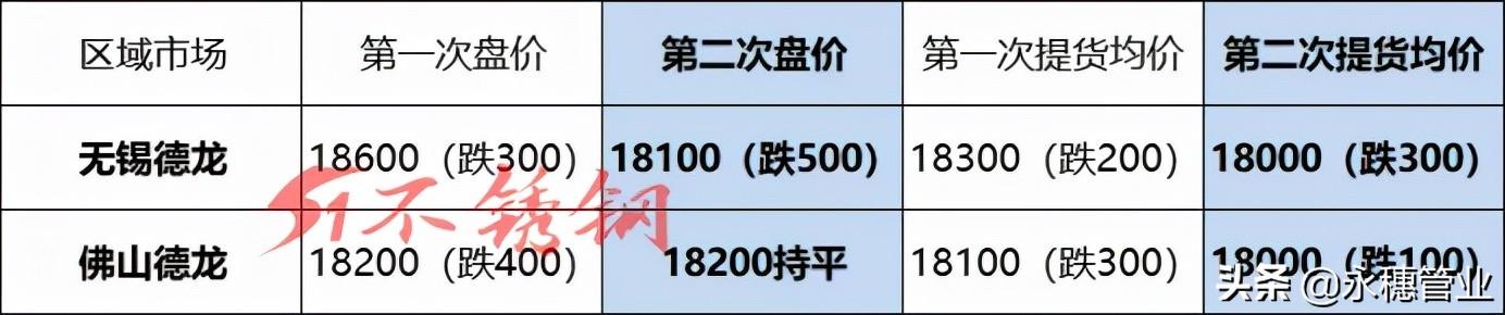 在青山盘价启动后,德龙无锡与佛山的盘价及提货均价均进行了二次调整: