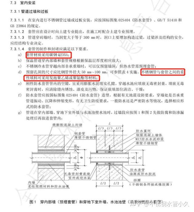 以上是结合不锈钢管道七个安装应用场景(埋墙、支架、埋地、保温、防腐、试压、连接)摘录的标准部分内容,从中不难看出,产品质量是基础,安装质量是保障!
