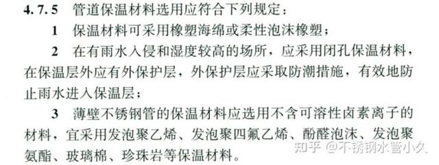 “保温”方面可参考T/CECS 153-2018和CJJ/T 154-2020的相关条款。总而言之,严禁使用含可溶性氯离子(卤族元素或卤化物)和胶水(氯丁胶)等材料。