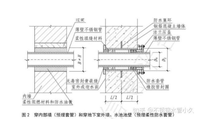 因套管选用碳钢Q235A,为防止电化学腐蚀,不锈钢管与套管间填料选择用发泡聚乙烯或聚氨酯材料。