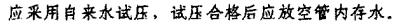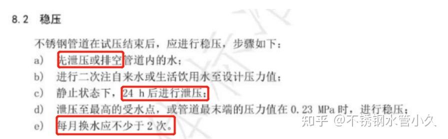 这里有两层含义:第一,为了防止氯离子腐蚀(点蚀),试压用水有严格要求,另一方面,应该排空管内存水,以进一步规避腐蚀风险,防止可能的氯离子浓度局部集聚,而同时,在实际工程实践中,完全排空是不现实的,一旦出现:用来源不明的水打压后,同时,长时间没有投入使用,很可能会出现漏水的情况,因此本规范提出“每月换水应不少于2次”,使管路中的水循环起来,也就大大降低了漏水的风险了。