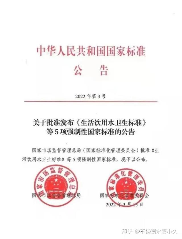 值得注意的是:GB 5749-2022 《生活饮用水卫生标准》于今年3月15日刚刚公布,实施日期为2023年4月1日。