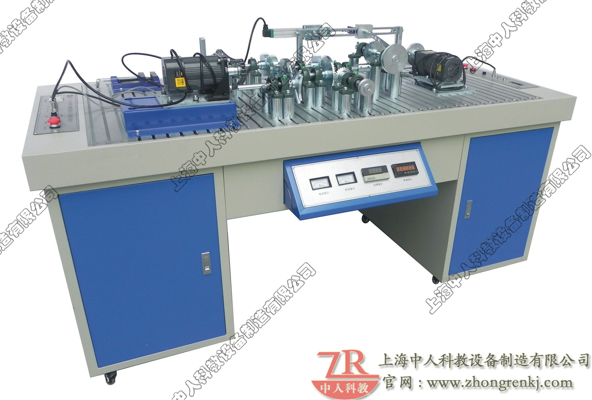 本装置由实训台架(铝合金型材结构)、交流减速电机、电源控制箱、各种机械零部件、配件等组成。