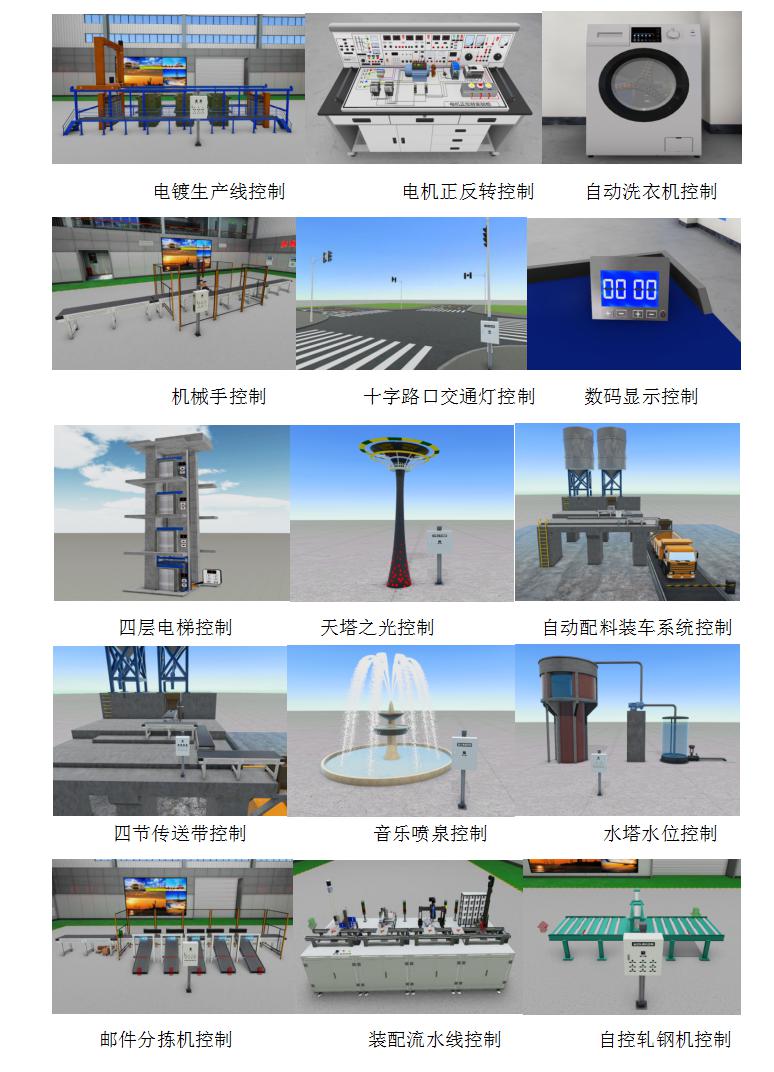 虚拟结合实验是由实物PLC控制虚拟控制对象的虚拟场景,既保留了编程的工业体验,又扩展了PLC应用范围。使学生在学校就能都得到大量的工业应用场景练习,为后继工业实际应用打下基础。